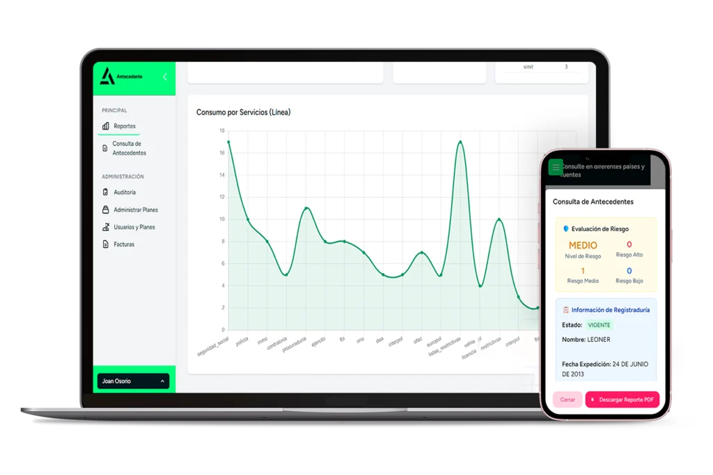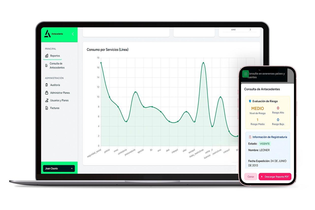 Nuestra plataforma permite verificar antecedentes en tiempo real con acceso a fuentes nacionales e internacionales. Con cobertura en Latinoamérica, facilitamos el cumplimiento, la gestión de riesgos y la toma de decisiones informadas para tu organización.
